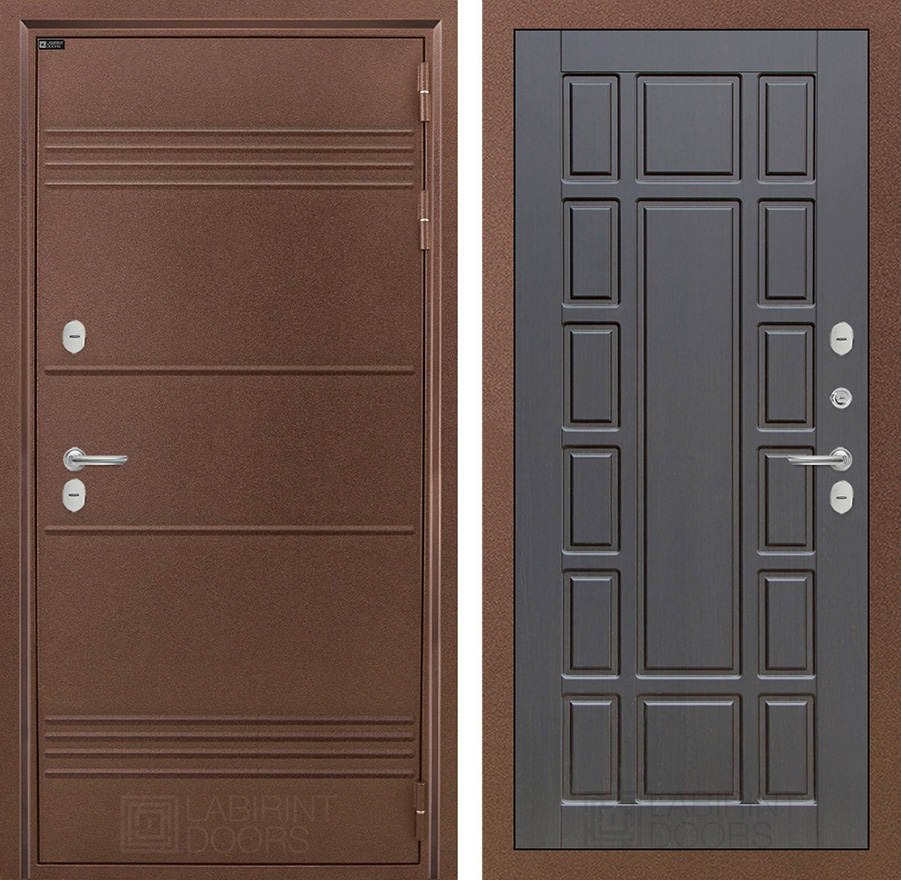 | Внешняя отделка: | Металлическая отделка с давлением Д44. Полимерное покрытие «Антик медный» с дополнительным цинковым грунтованием для защиты от коррозии. Фигурный наличник ФН-2 | |||