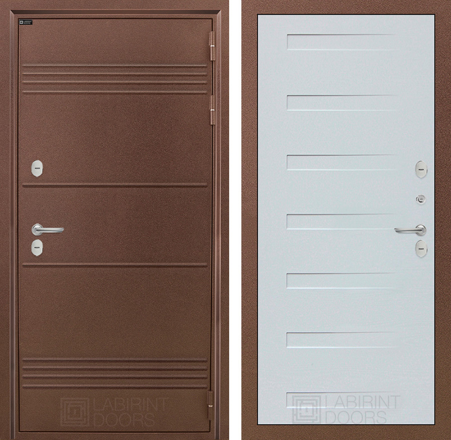 | Внешняя отделка: | Металлическая отделка с давлением Д44. Полимерное покрытие «Антик медный» с дополнительным цинковым грунтованием для защиты от коррозии. Фигурный наличник ФН-2 | |||