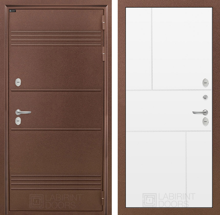 Внешняя отделка:Металлическая отделка с давлением Д44. Полимерное покрытие «Антик медный» с дополнительным цинковым грунтованием для защиты от коррозии. Фигурный наличник ФН-2