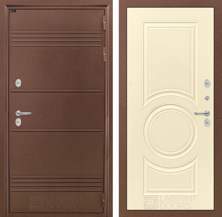 | Внешняя отделка: | Металлическая отделка с давлением Д44. Полимерное покрытие «Антик медный» с дополнительным цинковым грунтованием для защиты от коррозии. Фигурный наличник ФН-2 | |||