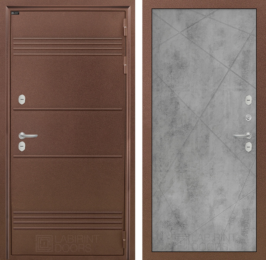 Внешняя отделка:Металлическая отделка с давлением Д44. Полимерное покрытие «Антик медный» с дополнительным цинковым грунтованием для защиты от коррозии. Фигурный наличник ФН-2