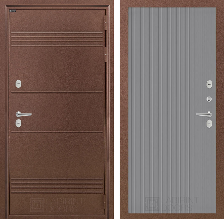 | Внешняя отделка: | Металлическая отделка с давлением Д44. Полимерное покрытие «Антик медный» с дополнительным цинковым грунтованием для защиты от коррозии. Фигурный наличник ФН-2 | |||