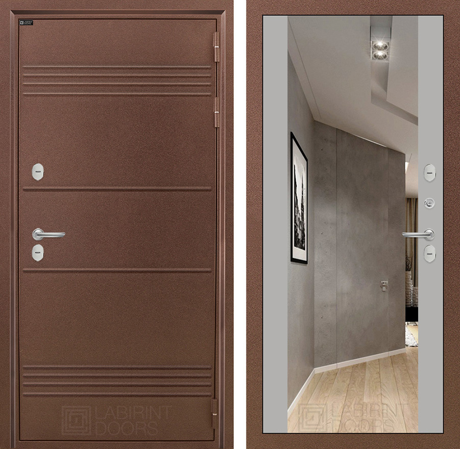 | Внешняя отделка: | Металлическая отделка с давлением Д44. Полимерное покрытие «Антик медный» с дополнительным цинковым грунтованием для защиты от коррозии. Фигурный наличник ФН-2 | |||
