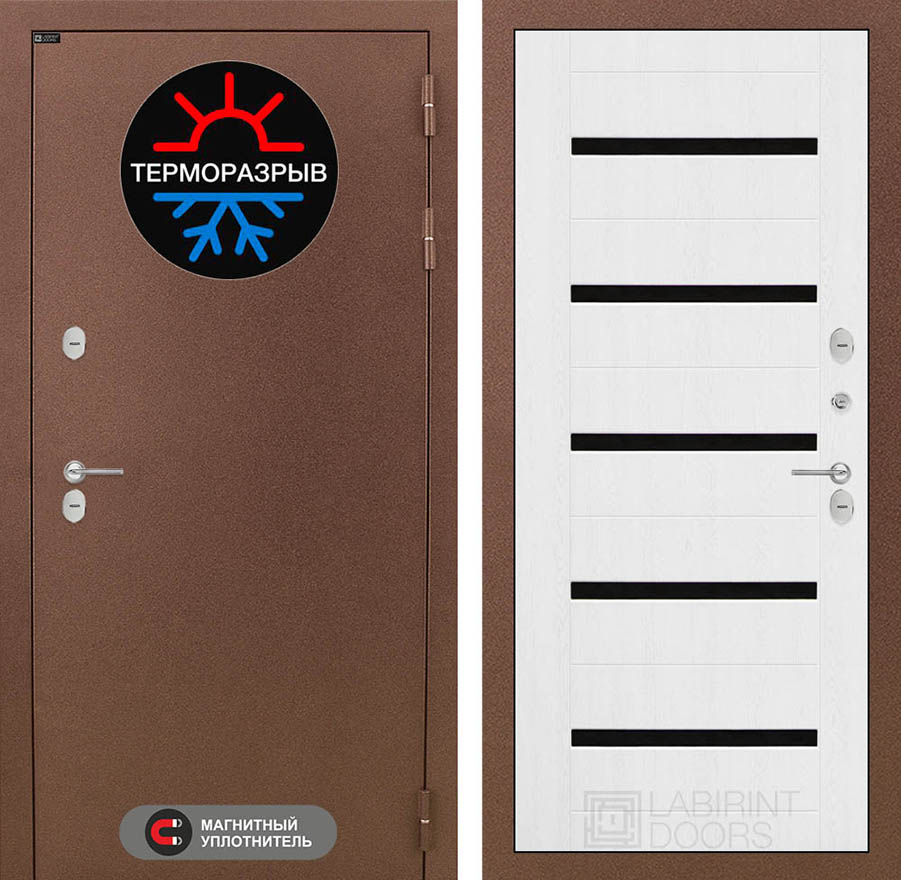 | Терморазрыв | Полиамидный профиль 7 мм по всему периметру полотна и короба двери. Термовставка в двери исключает «столкновение» разных температур | |||