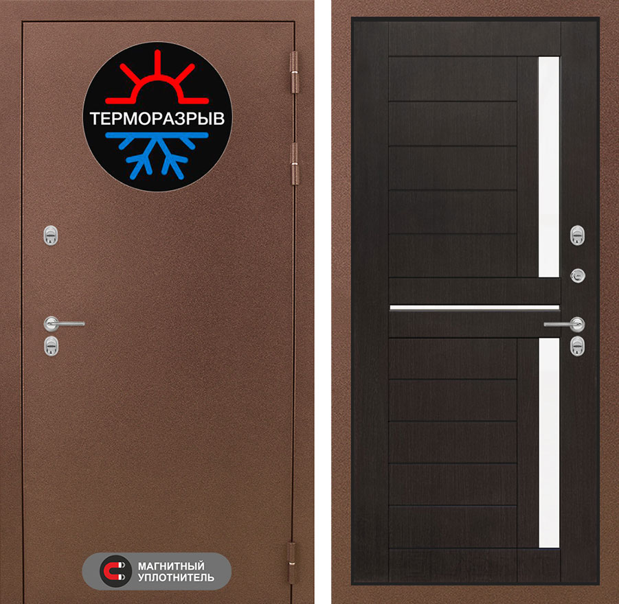 ТерморазрывПолиамидный профиль 7 мм по всему периметру полотна и короба двери. Термовставка в двери исключает «столкновение» разных температур