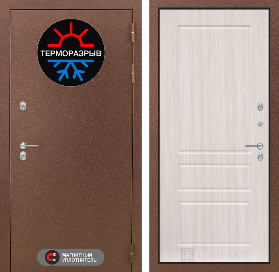 ТерморазрывПолиамидный профиль 7 мм по всему периметру полотна и короба двери. Термовставка в двери исключает «столкновение» разных температур