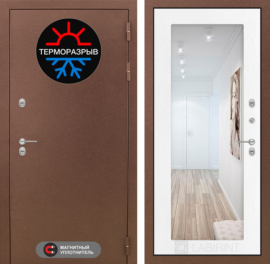 | Терморазрыв | Полиамидный профиль 7 мм по всему периметру полотна и короба двери. Термовставка в двери исключает «столкновение» разных температур | |||