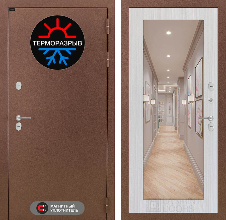 | Терморазрыв | Полиамидный профиль 7 мм по всему периметру полотна и короба двери. Термовставка в двери исключает «столкновение» разных температур | |||
