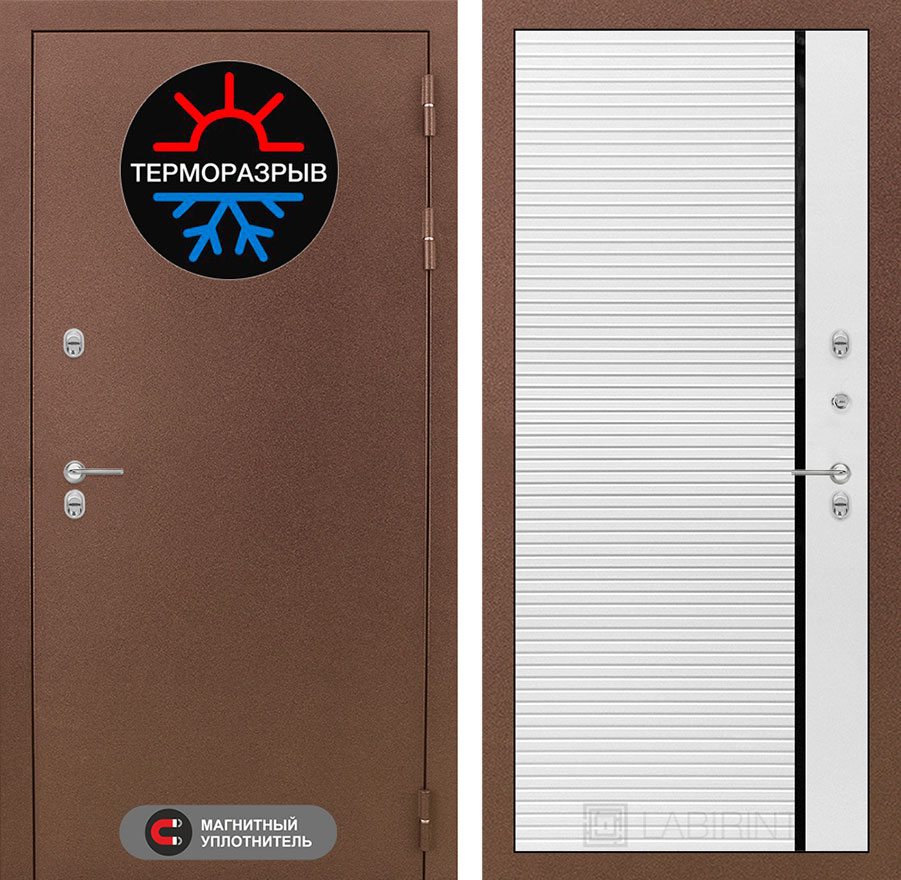 | Терморазрыв | Полиамидный профиль 7 мм по всему периметру полотна и короба двери. Термовставка в двери исключает «столкновение» разных температур | |||