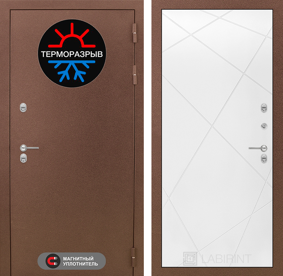 ТерморазрывПолиамидный профиль 7 мм по всему периметру полотна и короба двери. Термовставка в двери исключает «столкновение» разных температур