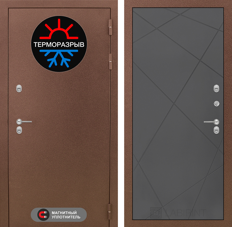 ТерморазрывПолиамидный профиль 7 мм по всему периметру полотна и короба двери. Термовставка в двери исключает «столкновение» разных температур