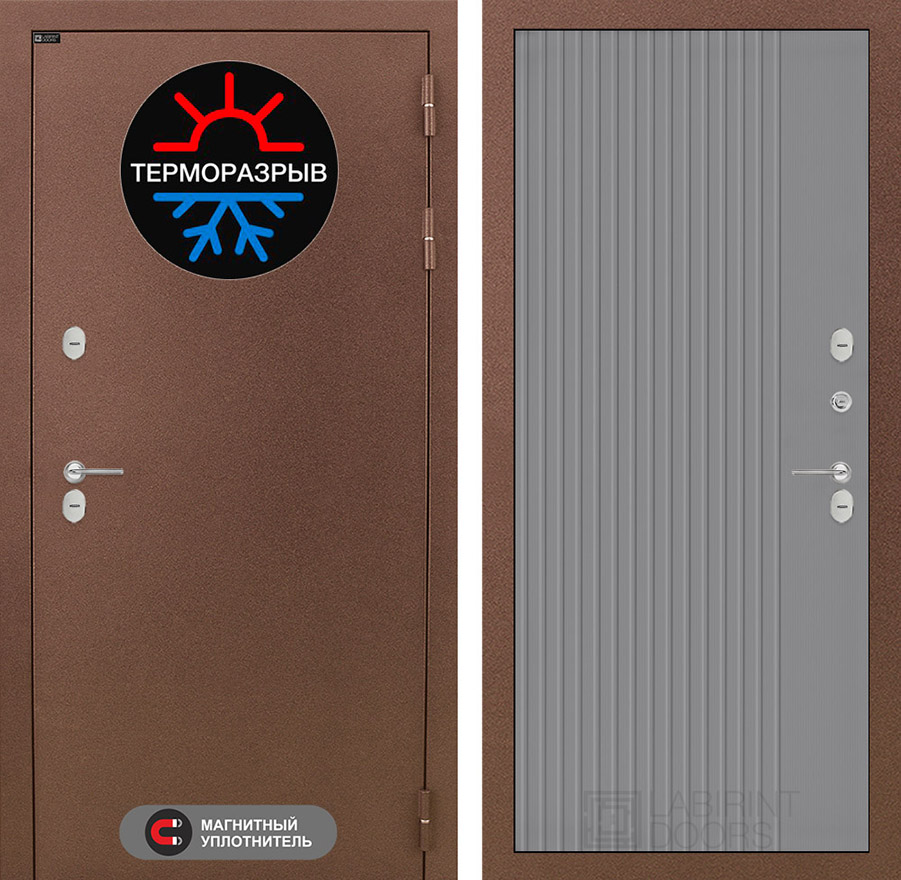 | Терморазрыв | Полиамидный профиль 7 мм по всему периметру полотна и короба двери. Термовставка в двери исключает «столкновение» разных температур | |||