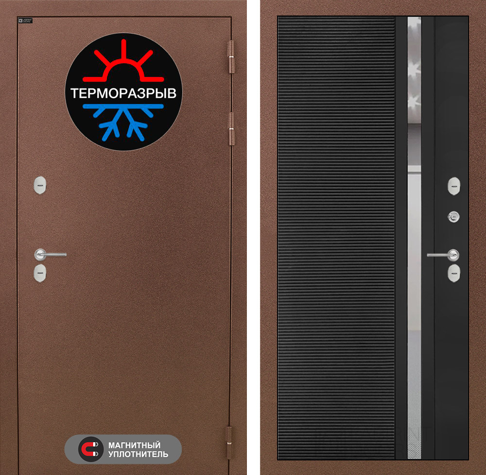 | Терморазрыв | Полиамидный профиль 7 мм по всему периметру полотна и короба двери. Термовставка в двери исключает «столкновение» разных температур | |||