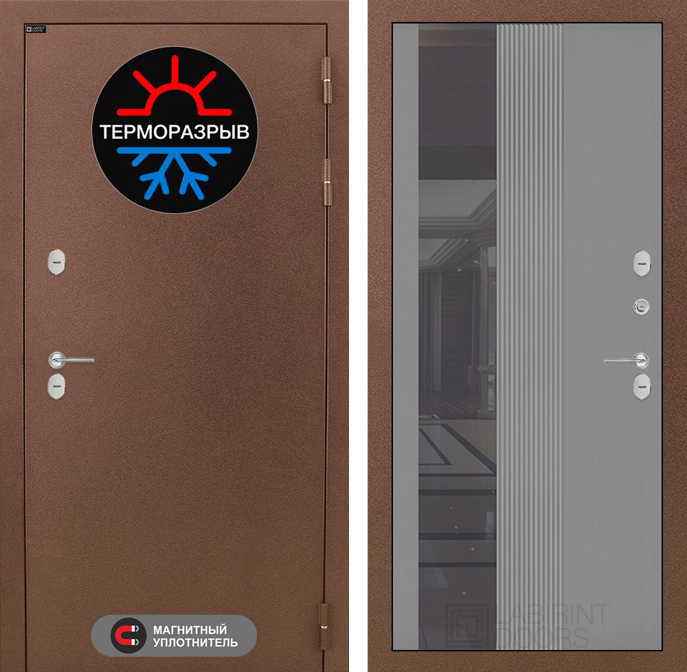 | Терморазрыв | Полиамидный профиль 7 мм по всему периметру полотна и короба двери. Термовставка в двери исключает «столкновение» разных температур | |||