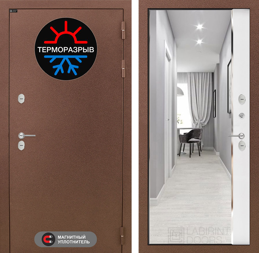 | Терморазрыв | Полиамидный профиль 7 мм по всему периметру полотна и короба двери. Термовставка в двери исключает «столкновение» разных температур | |||
