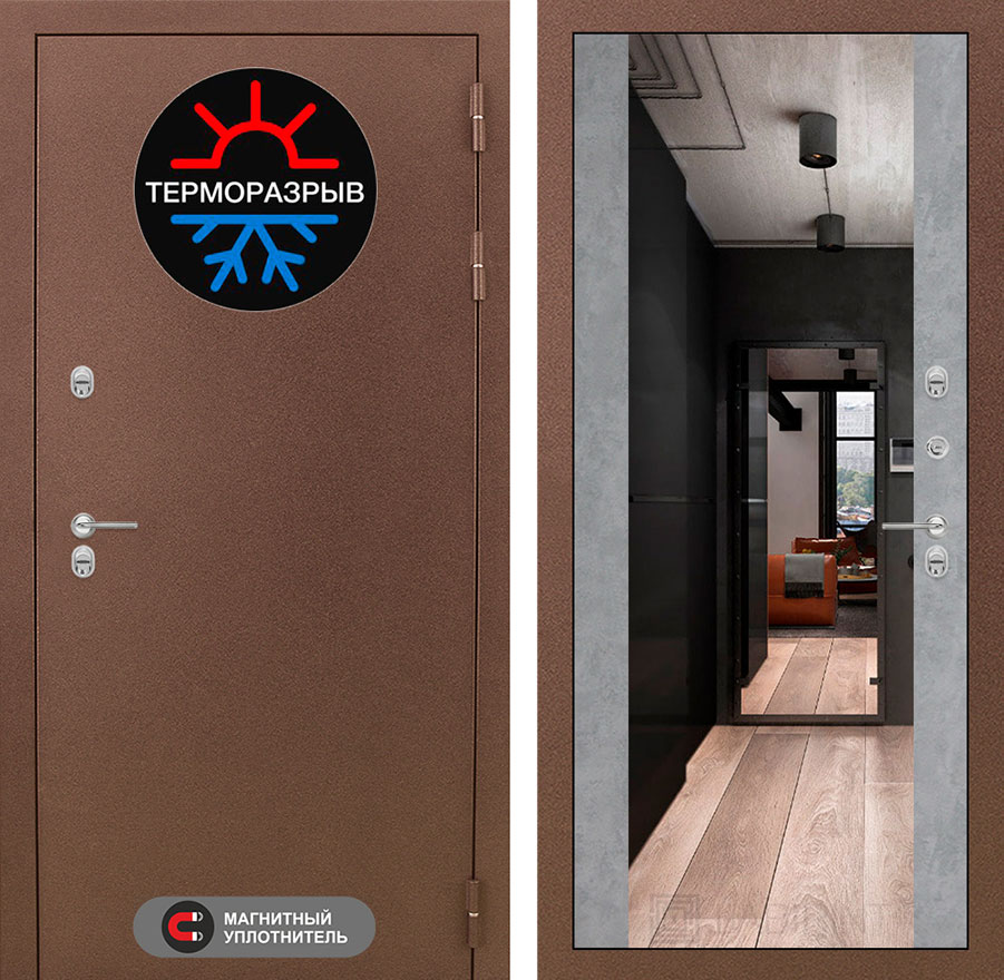 | Терморазрыв | Полиамидный профиль 7 мм по всему периметру полотна и короба двери. Термовставка в двери исключает «столкновение» разных температур | |||