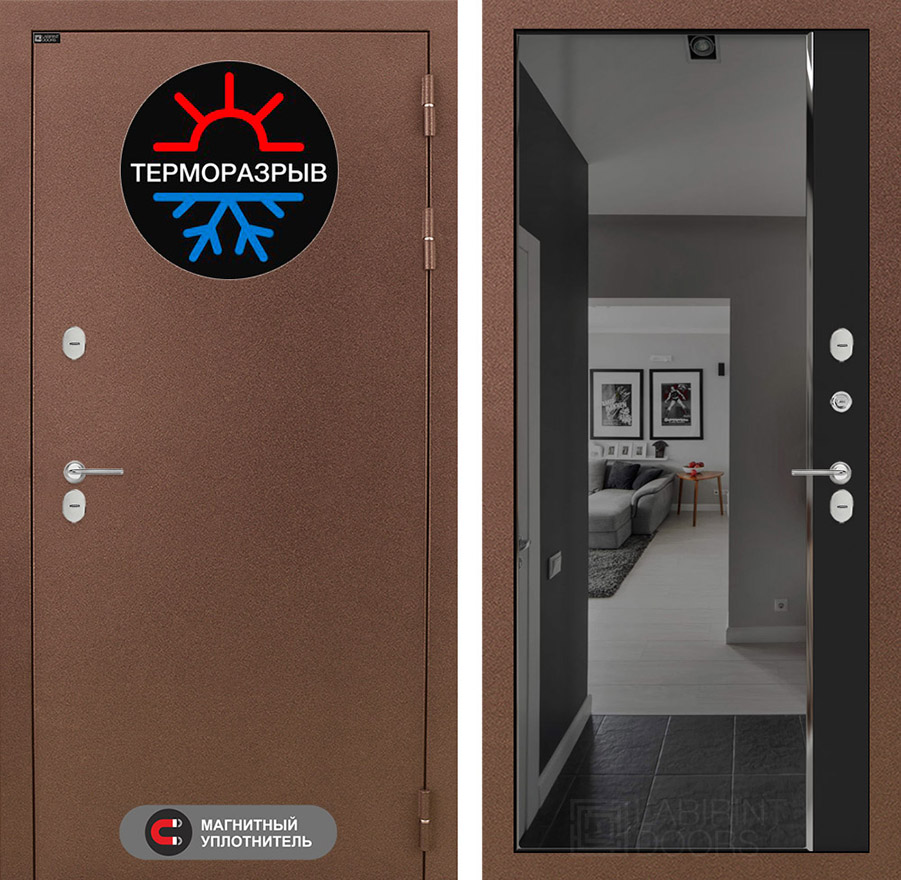 | Терморазрыв | Полиамидный профиль 7 мм по всему периметру полотна и короба двери. Термовставка в двери исключает «столкновение» разных температур | |||