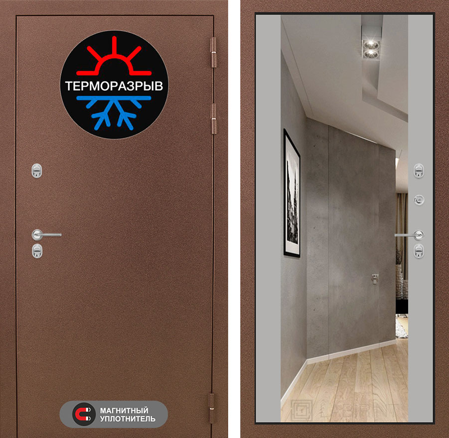 | Терморазрыв | Полиамидный профиль 7 мм по всему периметру полотна и короба двери. Термовставка в двери исключает «столкновение» разных температур | |||