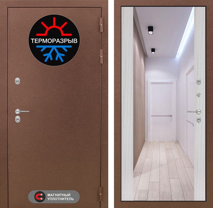 | Терморазрыв | Полиамидный профиль 7 мм по всему периметру полотна и короба двери. Термовставка в двери исключает «столкновение» разных температур | |||