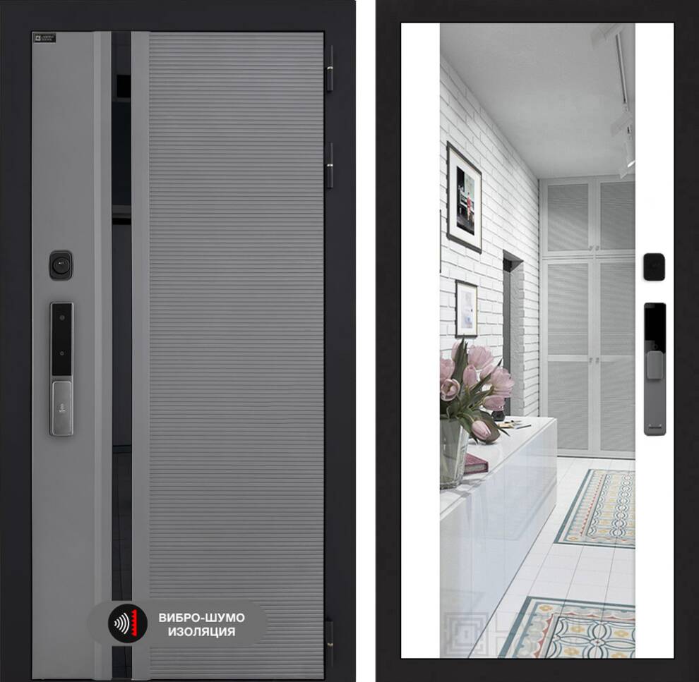 Фрезерованная МДФ панель 10 мм, цвет «Excimer Графит» стекло черное с металлическим наличником