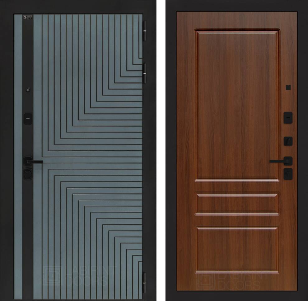 Фурнитура в черном цвете: Броненакладка врезная, накладка со шторкой, глазок , дверная ручка, ночная задвижка. Цилиндр ключ-вертушка (производитель не регламентируется), регулируемый эксцентрик.