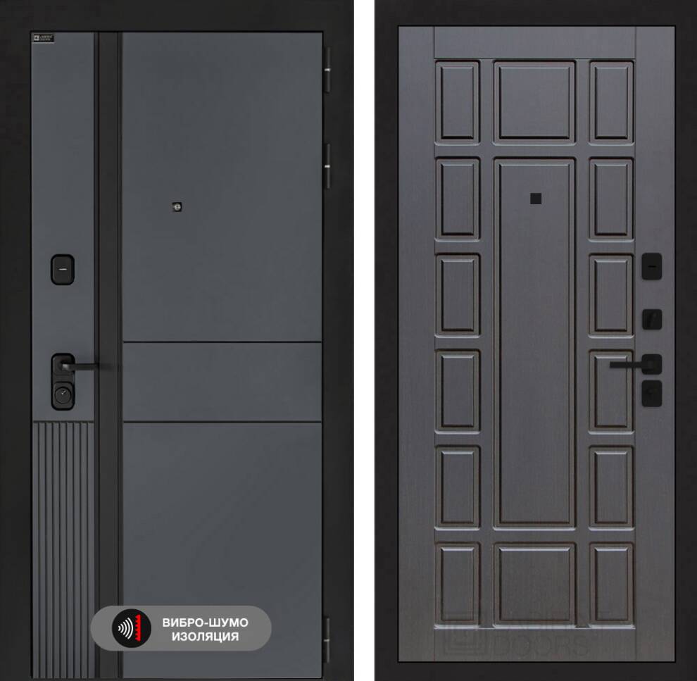 Фурнитура в черном цвете: Броненакладка врезная, накладка со шторкой, глазок , дверная ручка, ночная задвижка. Цилиндр ключ-вертушка (производитель не регламентируется), регулируемый эксцентрик.