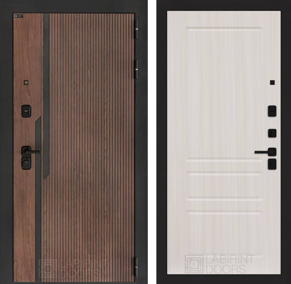 Фурнитура в черном цвете: Броненакладка врезная, накладка со шторкой, глазок , дверная ручка, ночная задвижка. Цилиндр ключ-вертушка (производитель не регламентируется), регулируемый эксцентрик.