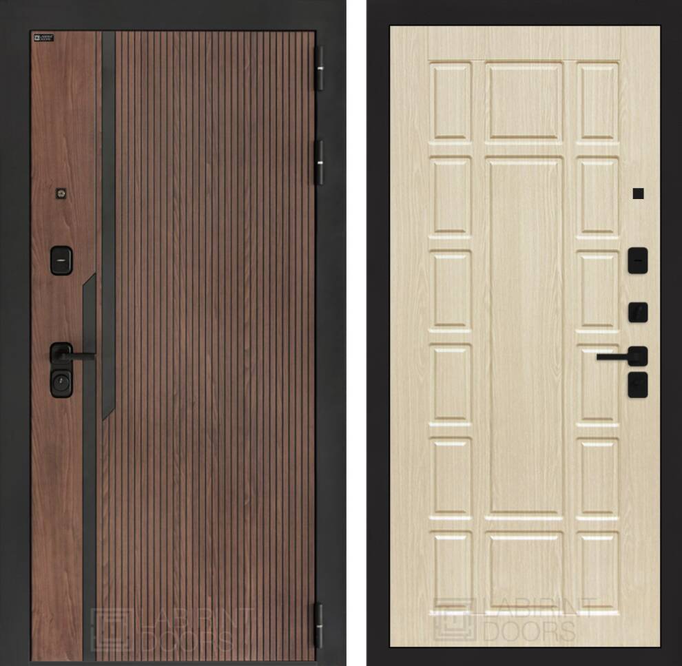 Фурнитура в черном цвете: Броненакладка врезная, накладка со шторкой, глазок , дверная ручка, ночная задвижка. Цилиндр ключ-вертушка (производитель не регламентируется), регулируемый эксцентрик.
