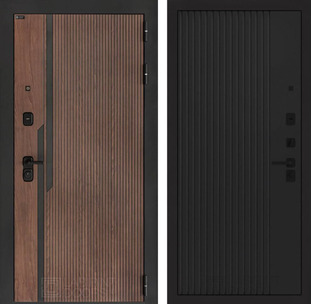 Фурнитура в черном цвете: Броненакладка врезная, накладка со шторкой, глазок , дверная ручка, ночная задвижка. Цилиндр ключ-вертушка (производитель не регламентируется), регулируемый эксцентрик.