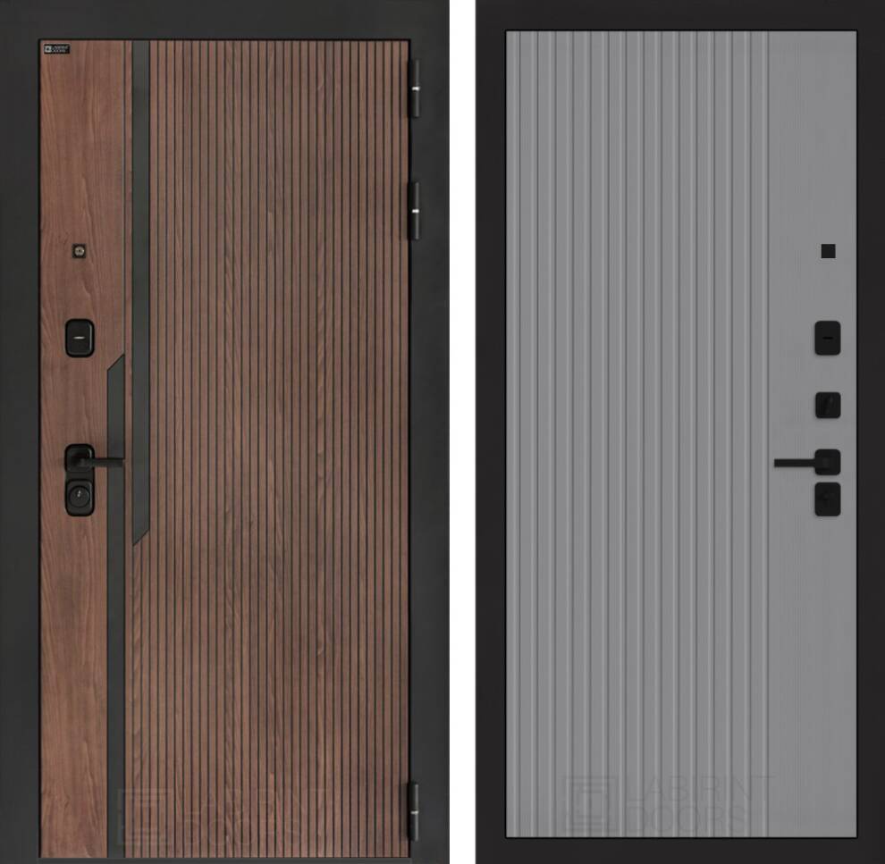 Фурнитура в черном цвете: Броненакладка врезная, накладка со шторкой, глазок , дверная ручка, ночная задвижка. Цилиндр ключ-вертушка (производитель не регламентируется), регулируемый эксцентрик.