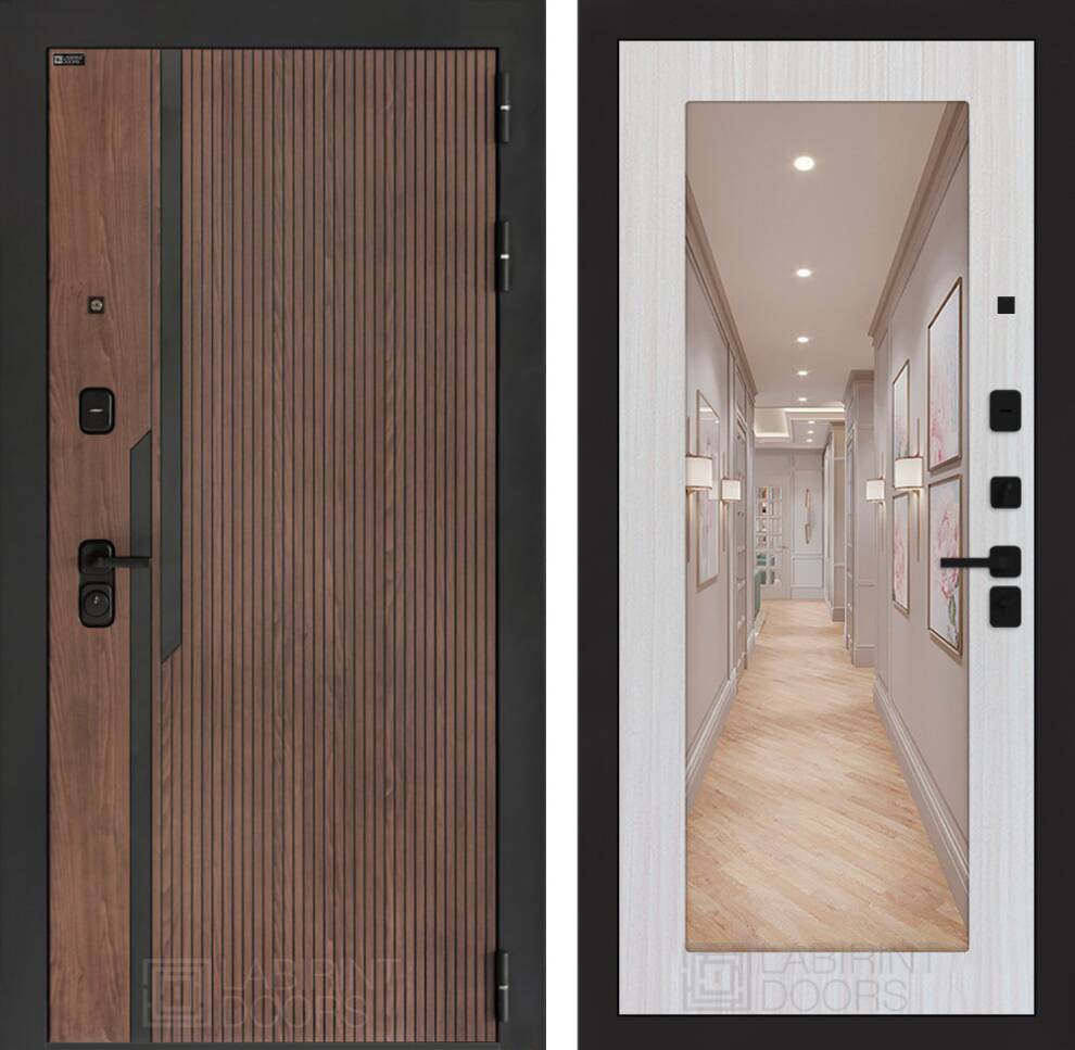 Фурнитура в черном цвете: Броненакладка врезная, накладка со шторкой, глазок , дверная ручка, ночная задвижка. Цилиндр ключ-вертушка (производитель не регламентируется), регулируемый эксцентрик.