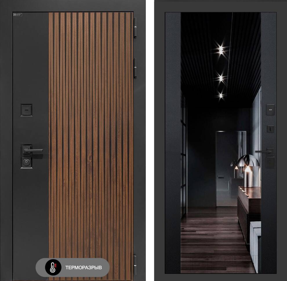 Влагостойкая МДФ панель 12 мм комбинированная в цвете «Мэджик блэк силк» и «Орех грецкий» с патиной