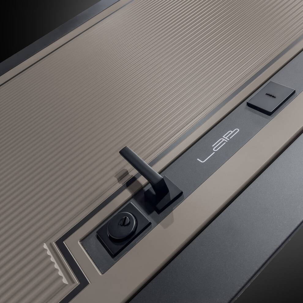 Фурнитура в черном цвете: Броненакладка врезная, накладка со шторкой, глазок , дверная ручка, ночная задвижка. Цилиндр ключ-вертушка (производитель не регламентируется), регулируемый эксцентрик.