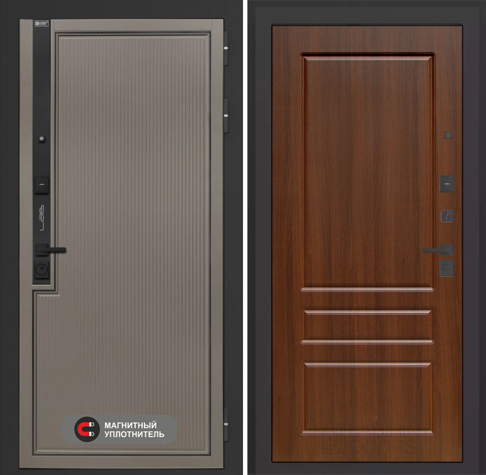 Фурнитура в черном цвете: Броненакладка врезная, накладка со шторкой, глазок , дверная ручка, ночная задвижка. Цилиндр ключ-вертушка (производитель не регламентируется), регулируемый эксцентрик.