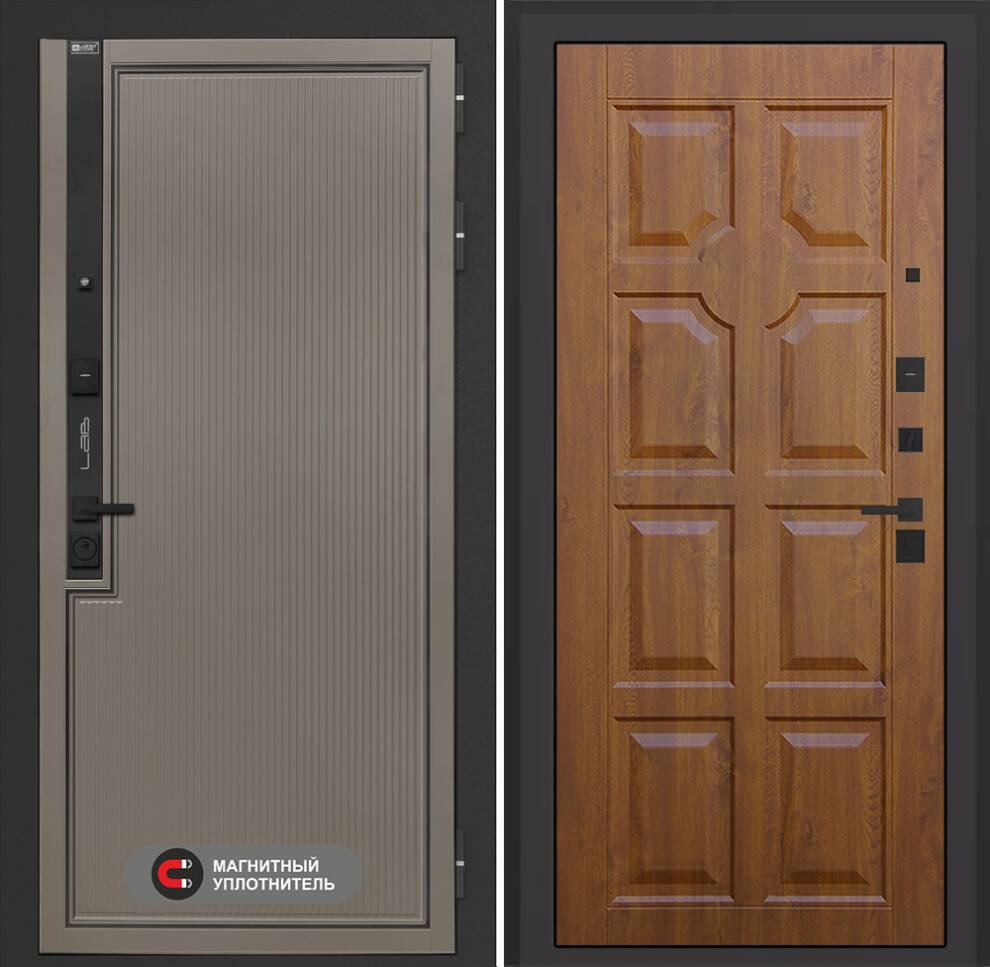 Сталь 1,5 мм, закрытый утепленный короб, усиливающие 2 ребра жесткости (вертикальные П-образные)