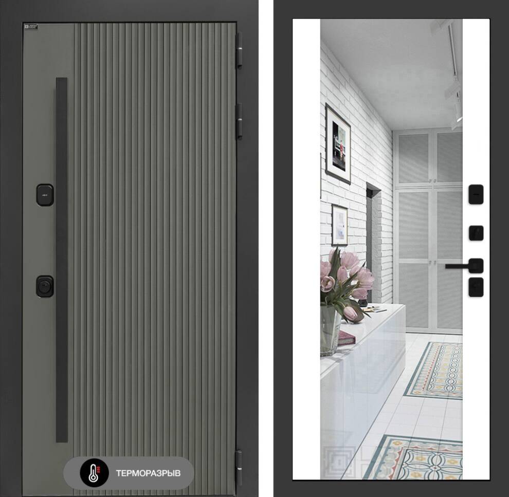 Декоративная МДФ панель 12 мм с широким зеркалом, цвет «Белый софт» (без текстуры)