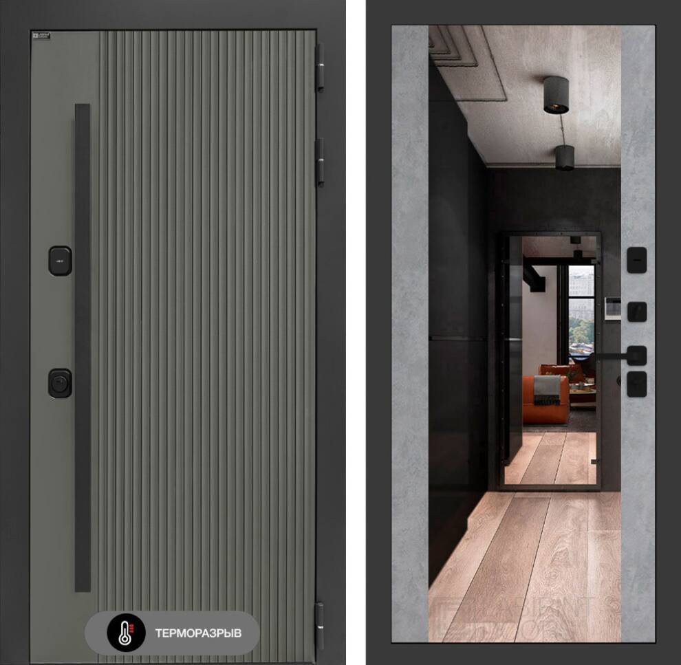 Декоративная МДФ панель 12 мм с широким зеркалом, цвет «Бетон светлый»