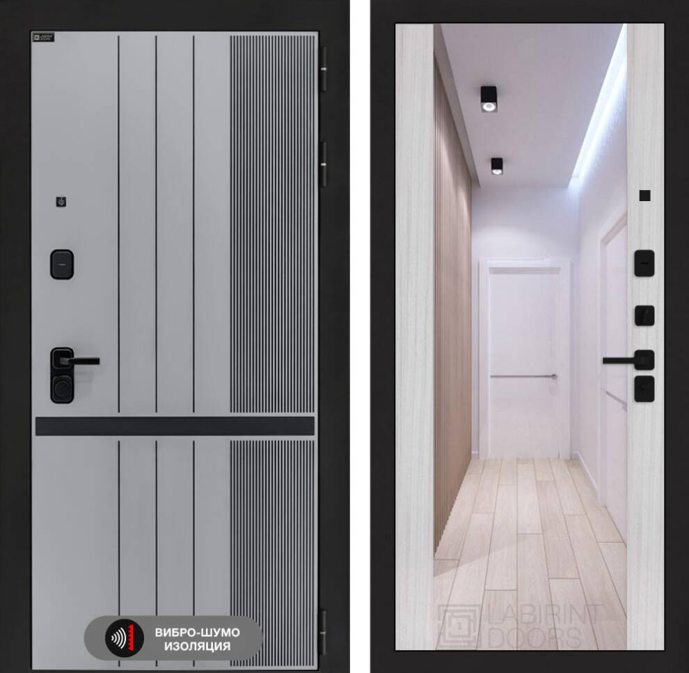 Фрезерованная МДФ панель 10 мм, цвет «Velluto Grigio» с патиной и вставкой из металла в цвет наличника (заподлицо)